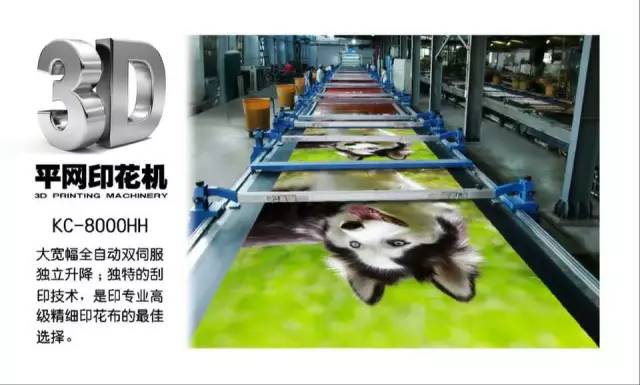 3. KC-8000V:全電腦自動(dòng)化平網(wǎng)印花機(jī)(專印成衣面料、針織布、梭織布、裝飾布、床單、窗簾等面料)